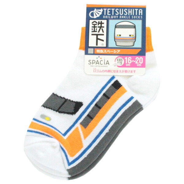 5足以上購入でネコポス送料無料 鉄下 スペーシア (オレンジ) 浅草〜東武日光/鬼怒川温泉 くるぶしソックス 鉄道をモチーフにした靴下 キッズサイズ くつ下 人気商品 プレゼントにオススメ JR 電車 鉄道 新幹線 グッズ 車下 あし鉄 くる下 あす楽