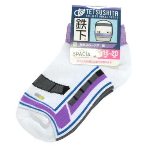 5足以上購入でネコポス送料無料 鉄下 スペーシア雅 (パープル) 浅草〜東武日光/鬼怒川温泉 くるぶしソックス 鉄道をモチーフにした靴下 キッズサイズ くつ下 人気商品 プレゼントにオススメ JR 電車 鉄道 新幹線 グッズ 車下 あし鉄 くる下 あす楽