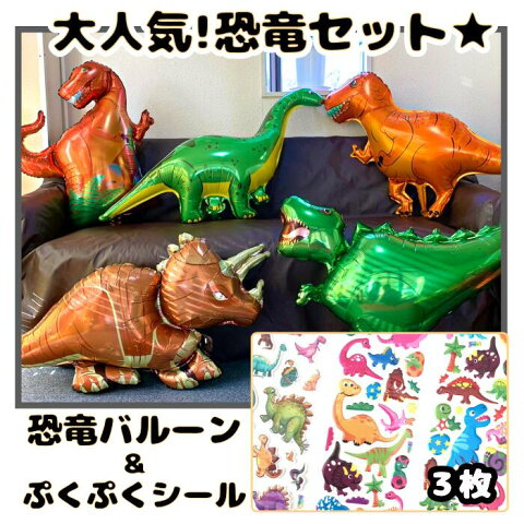 大人気恐竜バルーンセットと恐竜シールがセットになりました♪
