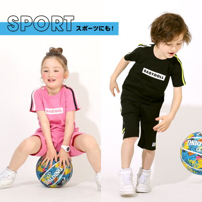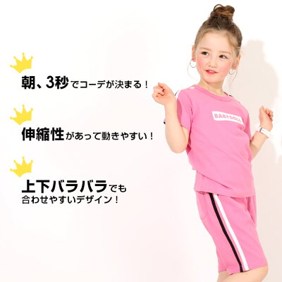 Tシャツとハーフパンツが2点セットになったお得な上下セットは使い勝手抜群◎ サイドの2本ラインがかっこよく、スポーティなスタイルにも対応◎ シンプルなデザインだから、単品使いでもコーデの幅が広がります。