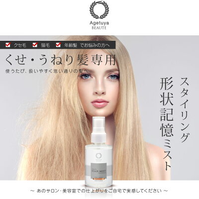 【公式|アゲツヤボーテ プレミアムヘアミスト 120mL】クセ毛 うねり ヘアアイロン コテ くせ毛 癖毛 改善 縮毛矯正 口コミ おすすめ くせ毛直し ヘアケア 枝毛 きしみ 寝癖 パーマ カラーで傷んだ髪に 女性用(レディース) 男性用(メンズ) こども 美容院 サロン