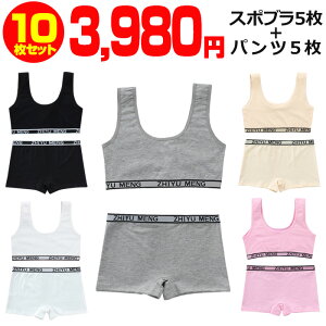 送料無料 子供下着セット スポーツブラとボクサーパンツ10点セット 上下セット下着 女の子 肌着 145cm〜155cm 12才〜14才 リブ英字ロゴ 無地 ブラック/グレー/ホワイト/ベージュ/ピンク スポブラ ショーツ パンツ 子供 小学生 中学生 ジュニア